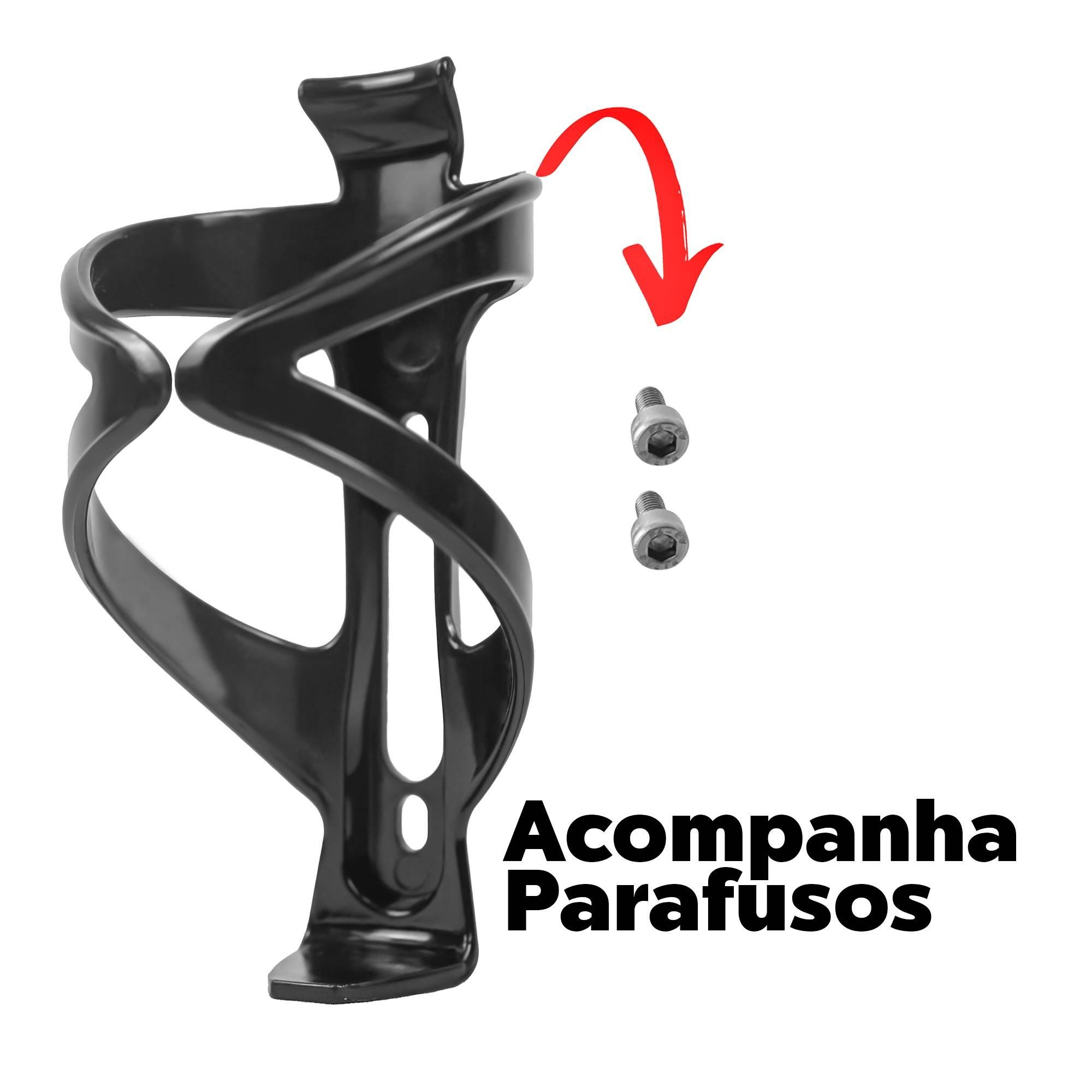 a pedalada. A instalação é rápida e fácil, e o suporte se adapta a diferentes tamanhos de garrafas. (O produto acompanha parafusos