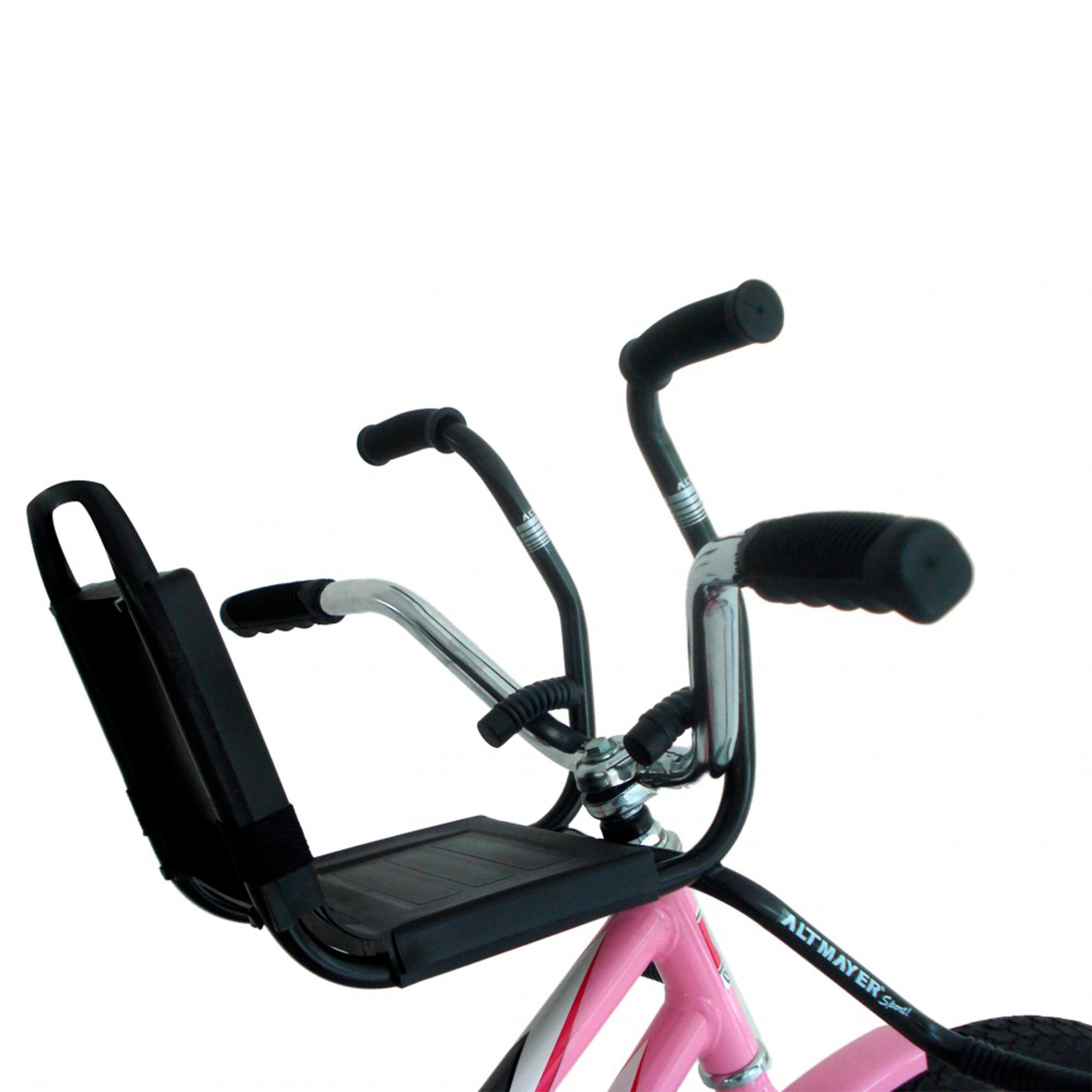 Possui guidãozinho de apoio para as mãos, assim a criança tem a sensação de ajudar na direção;